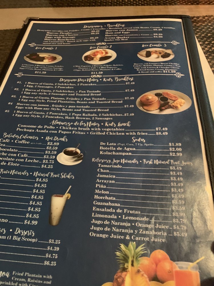 1 huevo al gusto, 2 salchichas, 2 panqueques 1 egg, 2 sausage, 2 pancakes.